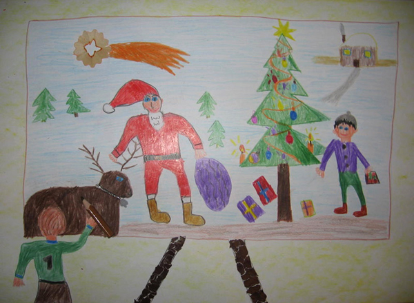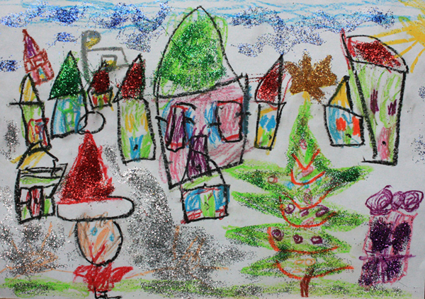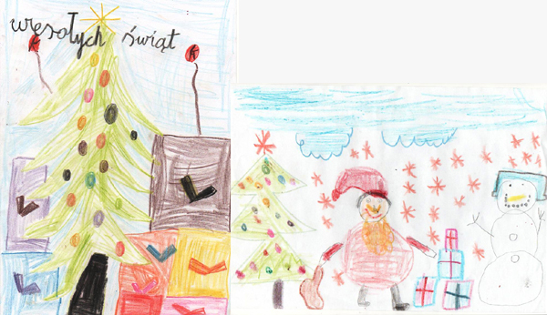 Święta kredką rysowane w wykonaniu rodzeństwa Julii i Szymona.
