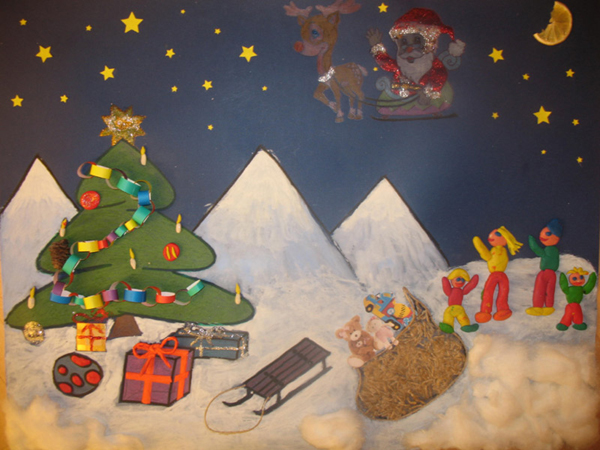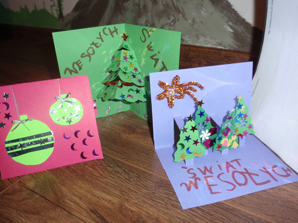 Trzy siostrzyczki zrobiły bardzo ładne kartki świąteczne. Na pewno każdy kto je otrzymał był bardzo zadowolony. Widać, że dziewczynki się starały i napracowały.