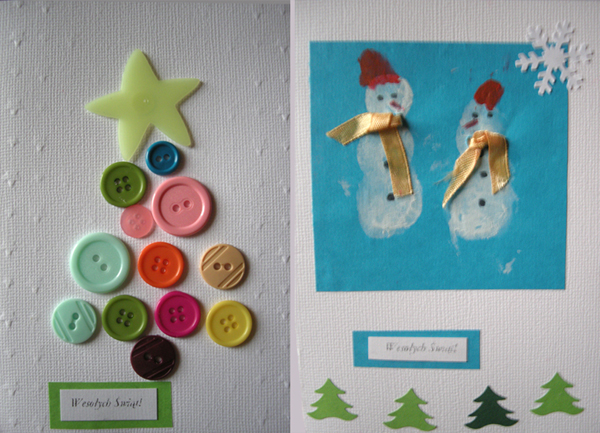 Bardzo podobają nam się pomysły na te kartki. Z jednej strony są dość proste w wykonaniu, dzięki czemu mogła je robić mała dziewczynka, z drugiej, dzięki mamie są ślicznie wykończone i bardzo eleganckie.